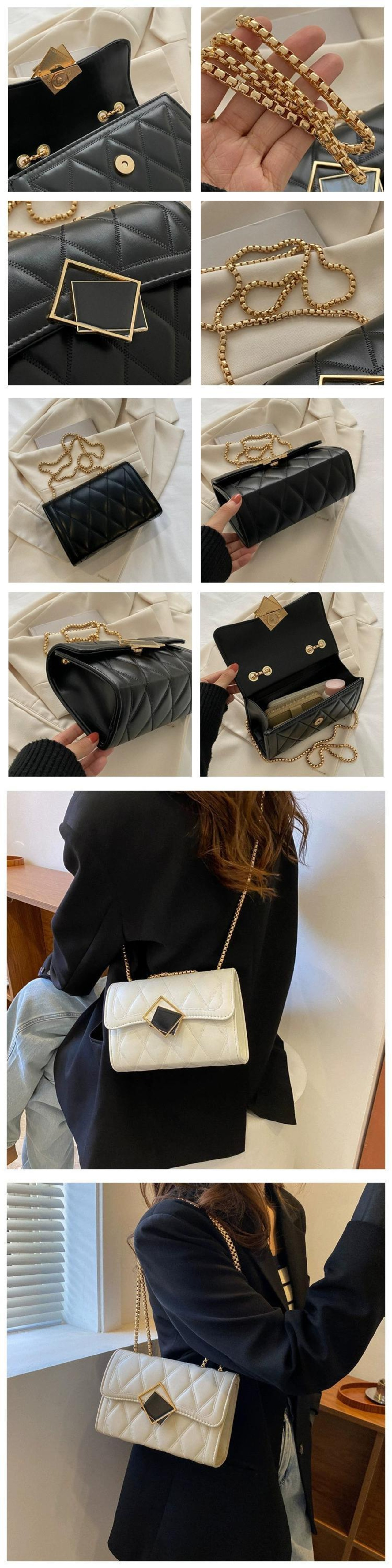 2023 ニッチデザインの新しいレディースバッグハイエンドセンスチェーン菱形ロックバックルレトロオールマッチワンショルダークロスボディ小さなスクエアバッグ スクウェア maibag87583500250