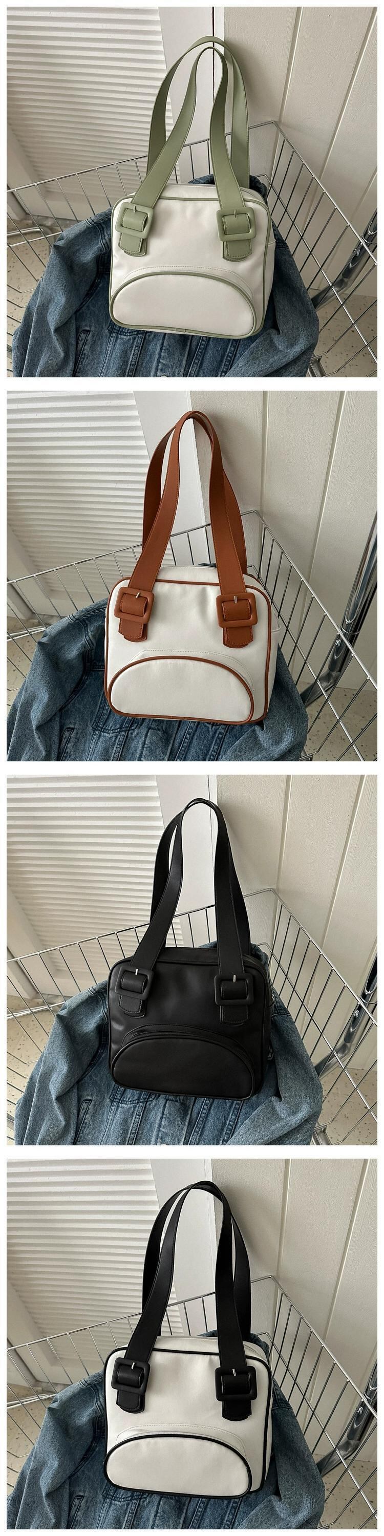 と南の新しいレトロなソフトレザーカラーコントラストジッパー大容量ショルダーバッグ通勤ブリーフケースカジュアルカレッジスタイルレディースバッグ maibag52005242191