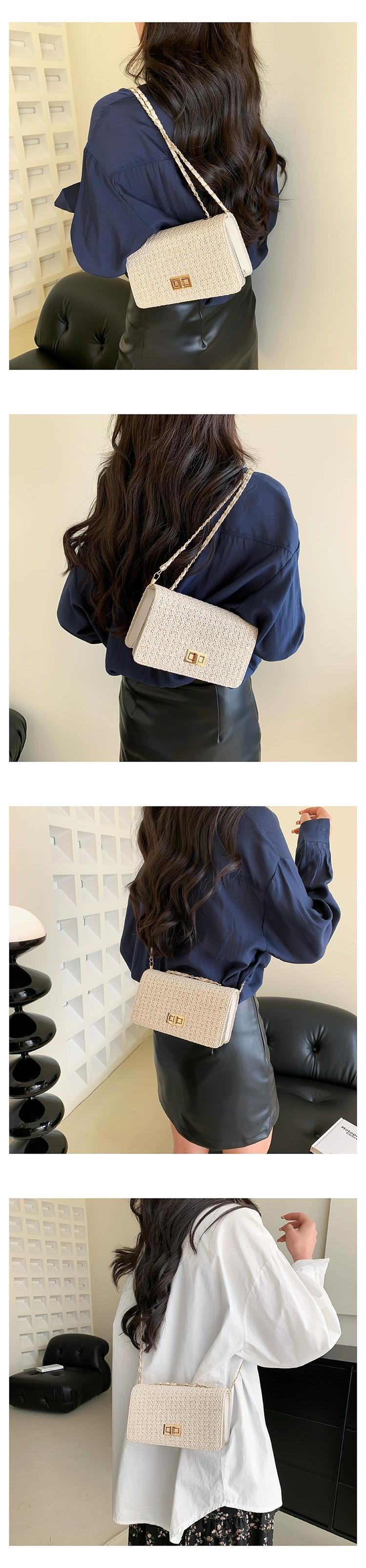 バージョンのネットレッドわらバッグ女性 2023 新しい人気のチェーンメッセンジャービーチ織りシングルショルダーロック小さな正方形のバッグ ストローバッグ スクウェア maibag23757065137