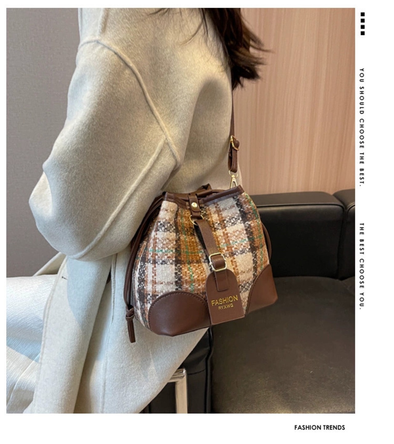 チェック柄バッグ女性の 2022 新しいトレンディなファッションレトロバケットバッグニッチオールマッチインメッセンジャーバッグ小さなバッグ maibag3159791792