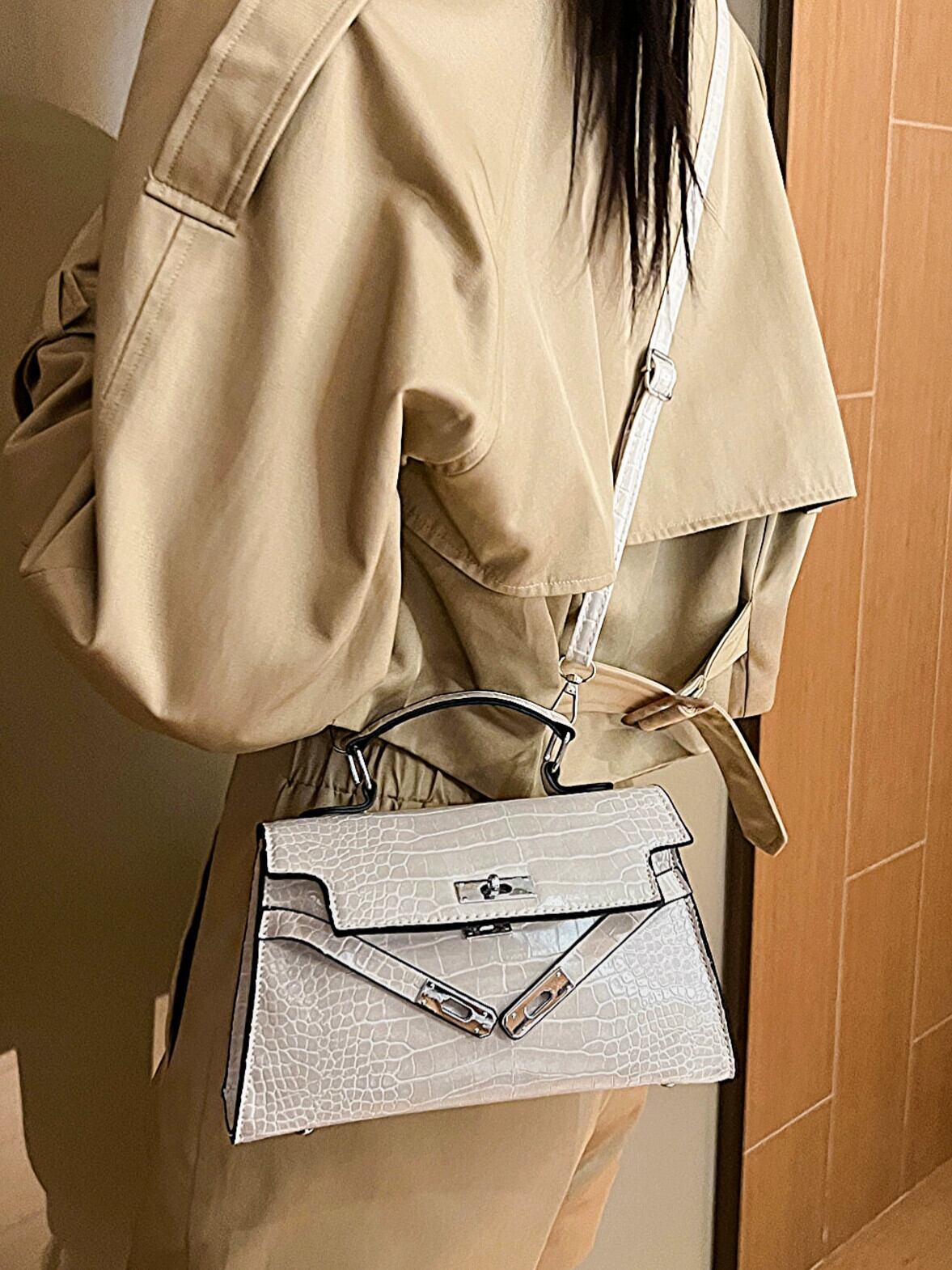 今年人気の手持ち小さめバッグレディース2023新作トレンドオールマッチクロコダイル柄ケリーバッグ高級質感メッセンジャーバッグ maibag30440906041