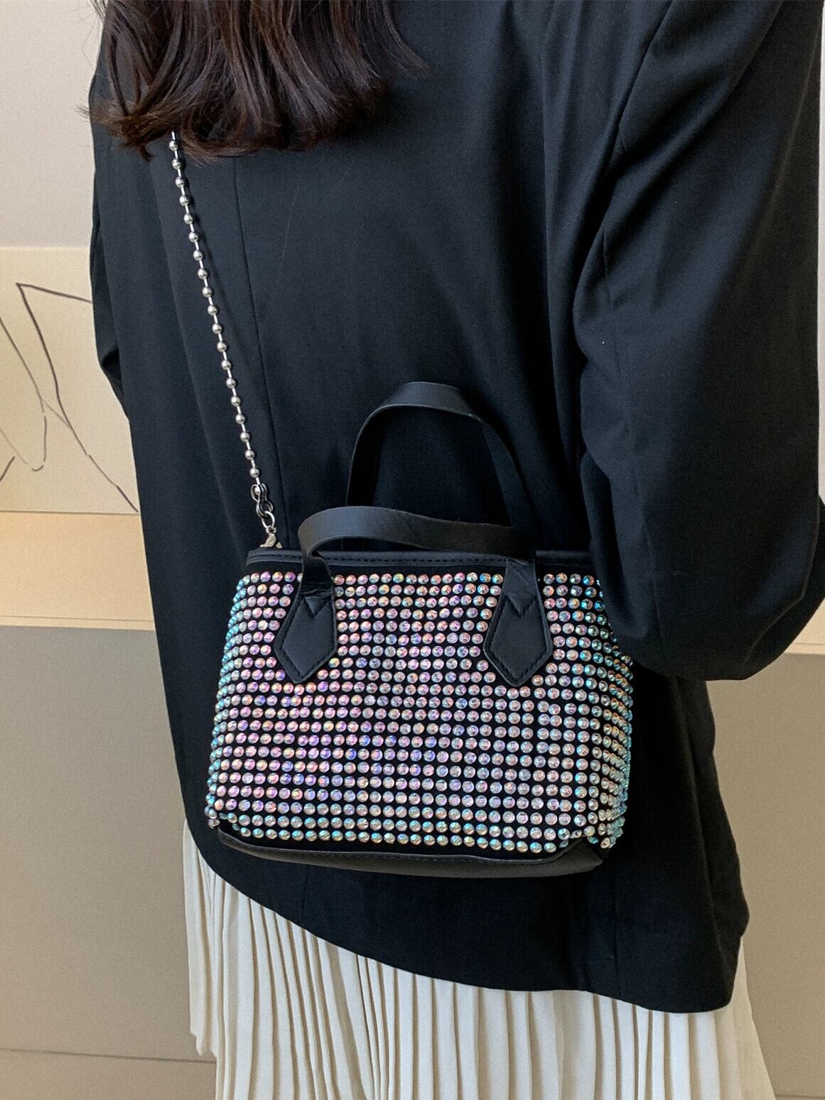 ハイエンド eign スタイルのスパンコール付き小さなバッグ女性 2023 新しいファッションチェーン小さな正方形のバッグポータブルメッセンジャーバッグトレンドのバージョン スクウェア maibag55571014233