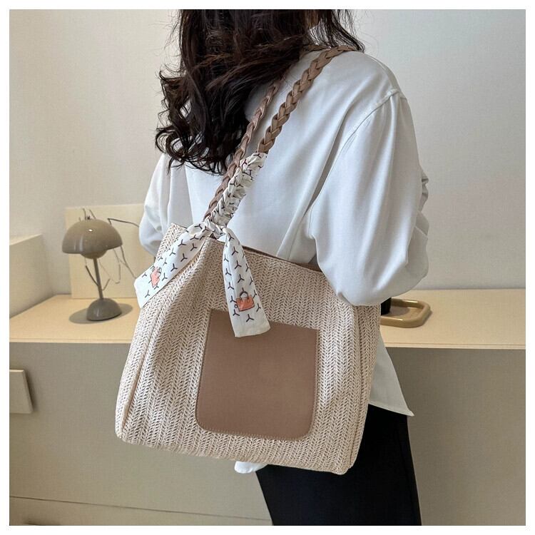 大容量ネットレッドバッグレディース 2023 新しいトレンディな織りシングルショルダーレディースバッグファッションわら織りカジュアル通勤トートバッグ maibag31495437511