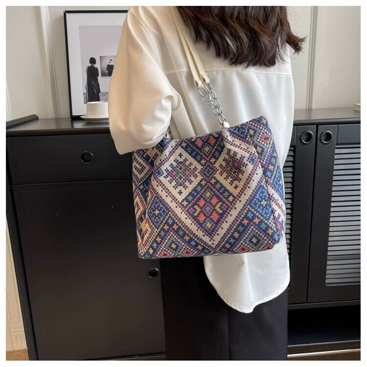 エスニック風柄配色大容量カジュアルバッグ万能ニッチデザイン個性ワンショルダー脇通勤トートバッグ maibag97573145697