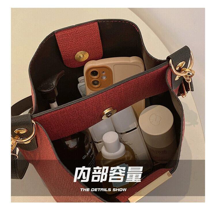 レディースバッグ 2023 新色コントラストオールマッチシンプルレトロファッション大容量テクスチャー通勤ショルダーメッセンジャーバケットバッグ maibag64166654619