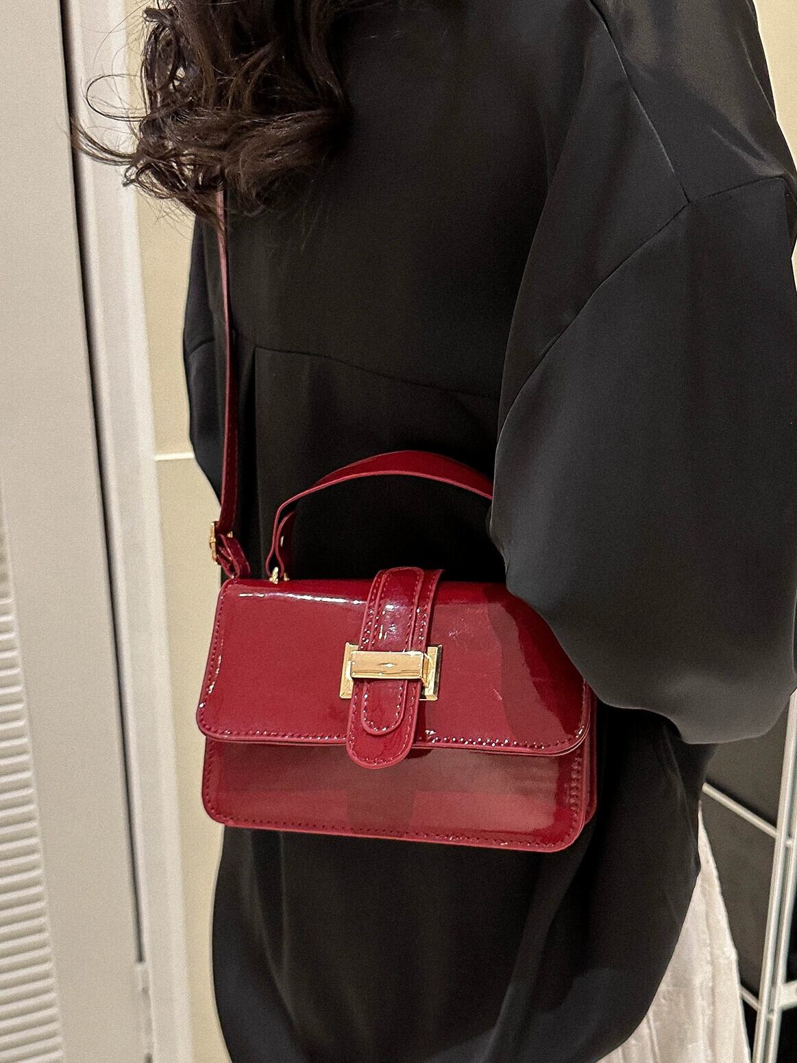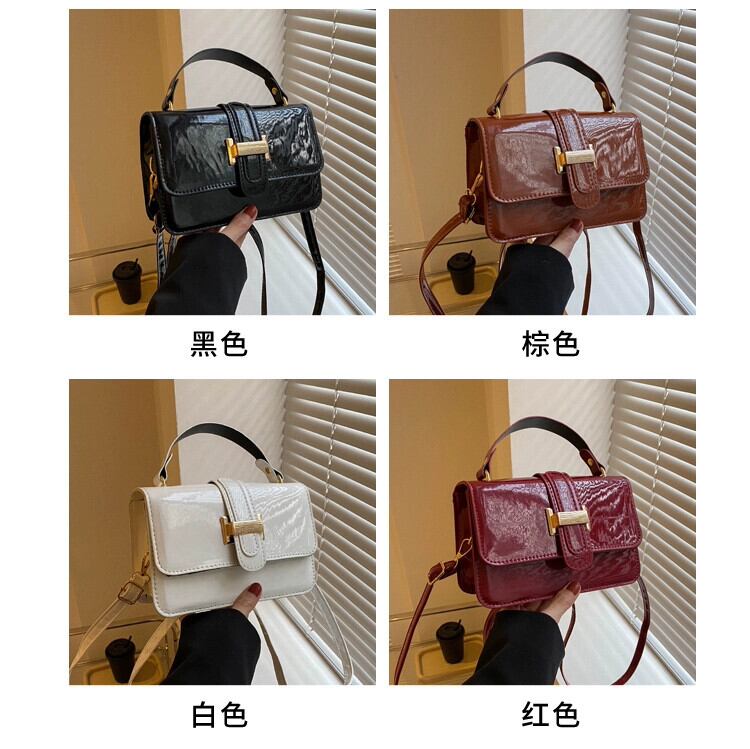 -end eign スタイル小さなバッグ女性 2023 新しいファッションオールマッチメッセンジャーバッグパテントレザー明るい表面ワイドショルダーストラップ小さな正方形バッグ スクウェア maibag48621908309