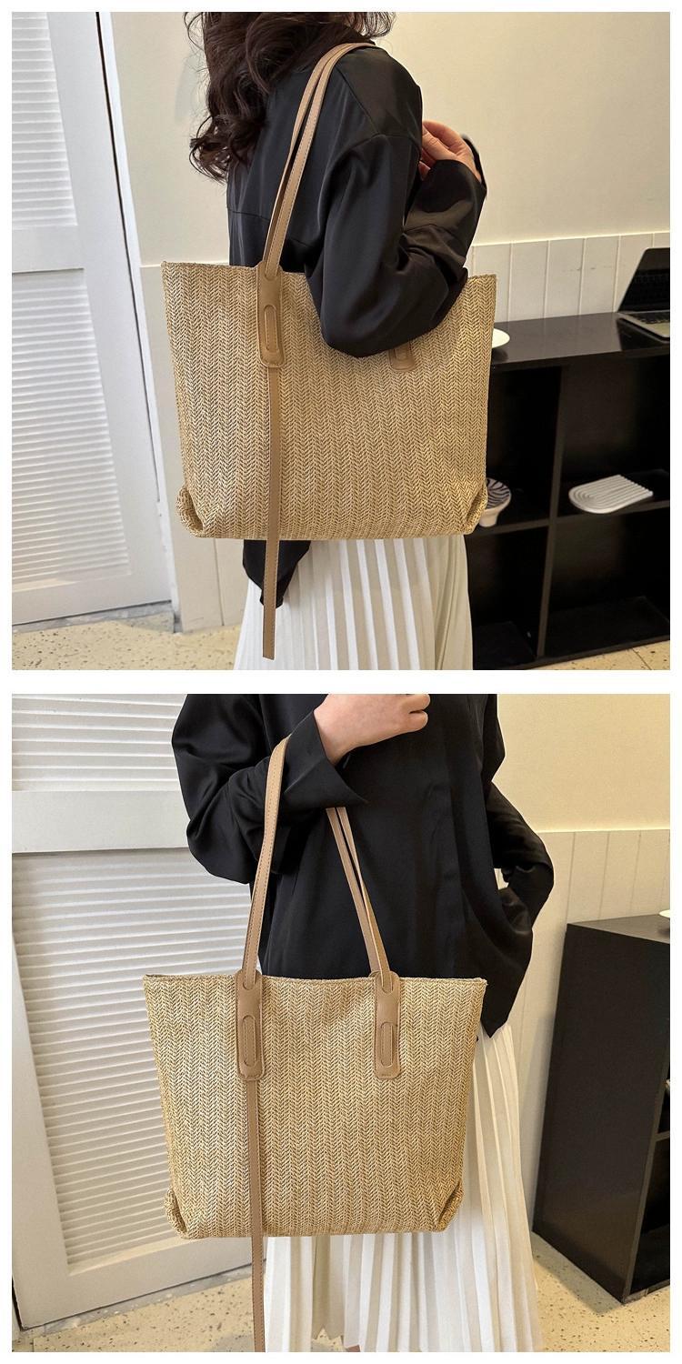 わら織り大容量バッグ女性 2023 新しいトレンディな休暇ビーチ織りレディースバッグ通勤ショルダートートバッグ大きなバッグ maibag82646943840