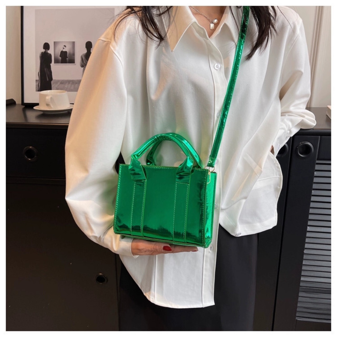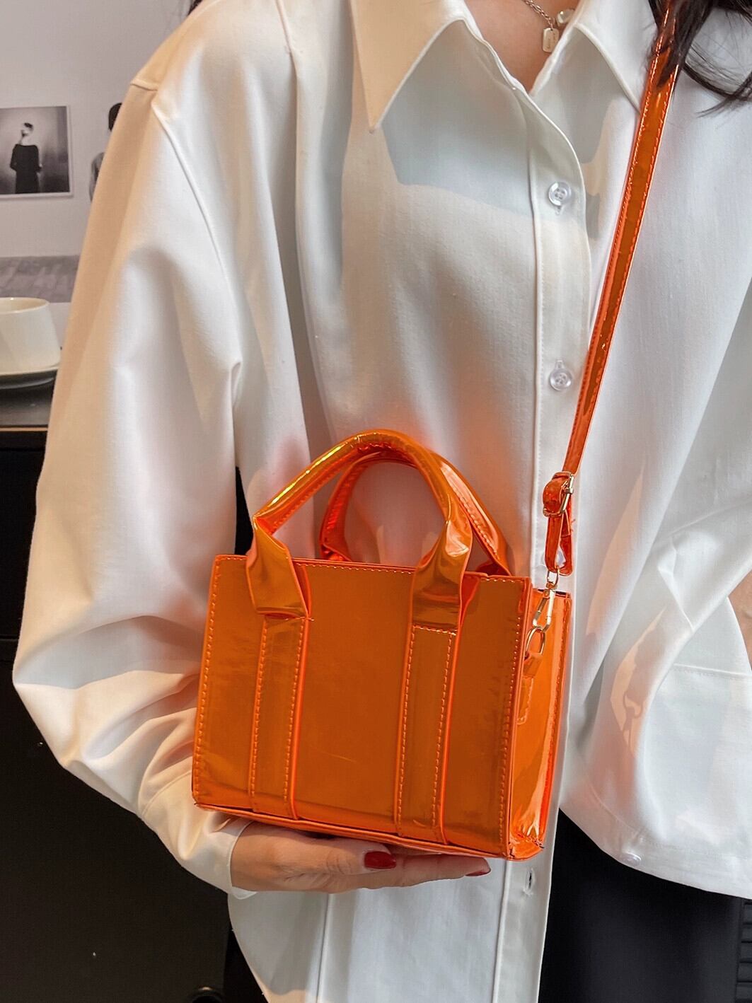 2023 新しいトレンディなパテントレザー小さなバッグファッション携帯電話バッグテクスチャオールマッチポータブル小さな正方形バッグワンショルダーメッセンジャーバッグ女性 スクウェア maibag37377012191