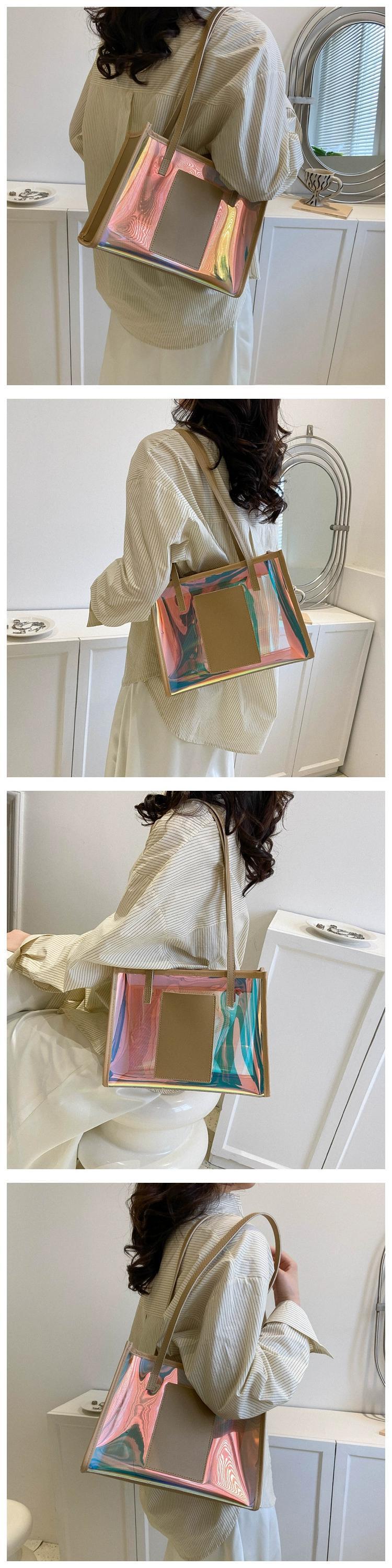 レーザー透明バッグ女性 2023 新しいハンドキャリートートバッグゼリーバッグインファッション小さな正方形バッグ休暇ビーチバッグ スクウェア maibag31237854821