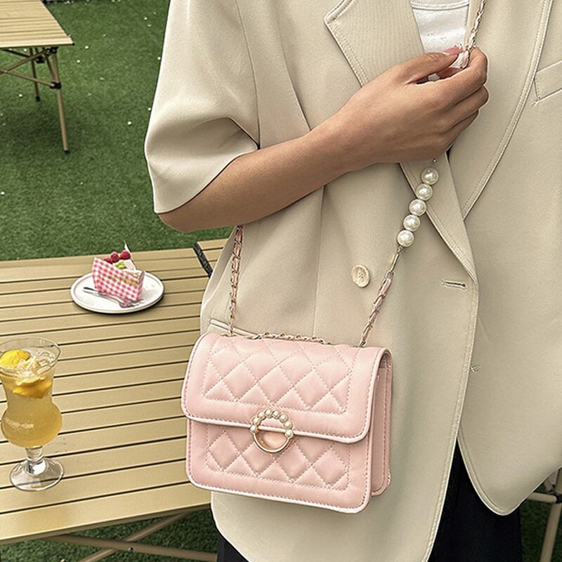 レディースバッグ 2023 新しいトレンディなファッション ese とオールマッチレトロ刺繍糸菱形パールチェーンワンショルダーメッセンジャー小さな正方形バッグ 真珠 スクウェア maibag56011664948