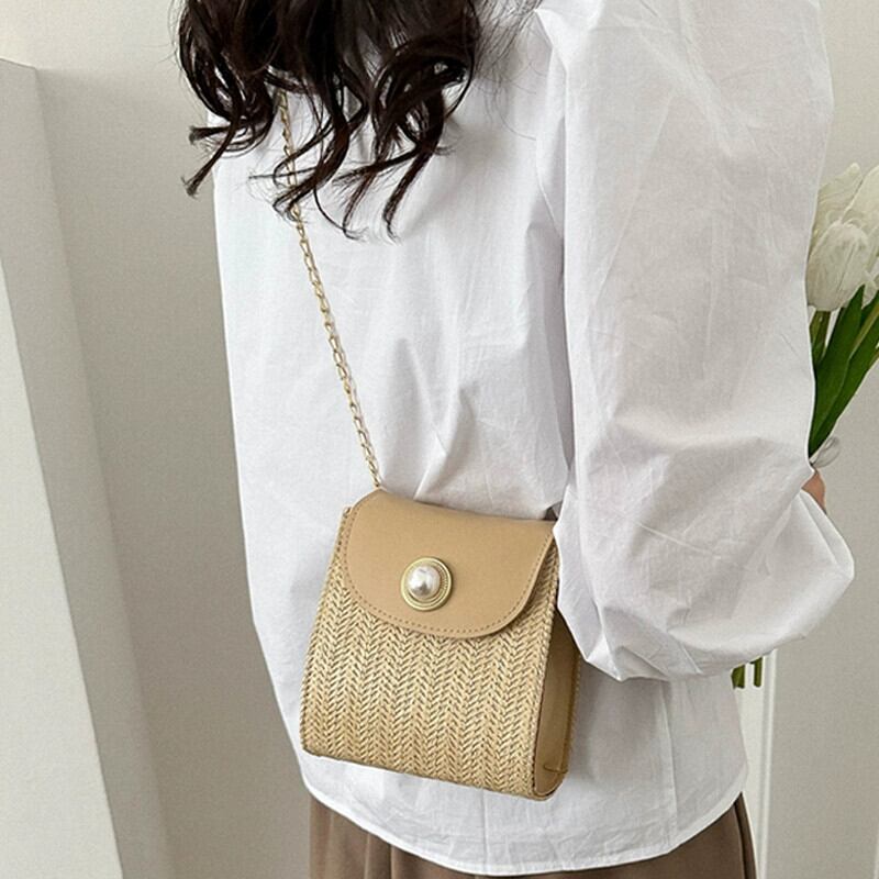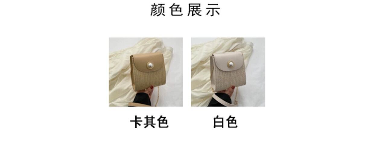 海辺のビーチ小さな新鮮なファッションわら織りバッグ女性織小さな正方形バッグパールチェーン携帯電話ショルダーメッセンジャーバッグトレンディな 真珠 スクウェア maibag13848479580