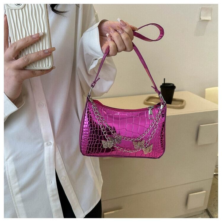 2023 新ニッチデザインバッグ女性のパテントレザー光沢のあるクロコダイルパターンチェーン脇の下バッグレトロバゲットショルダーバッグ maibag90486296585