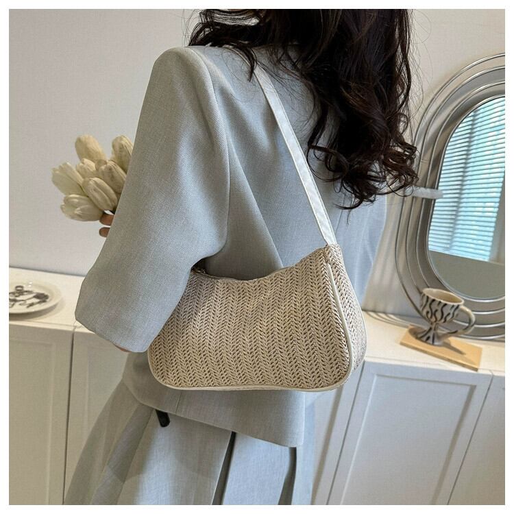 バッグ女性 2023 夏の新ニッチレトロハイエンド脇の下わら織り大容量シンプルな織りショルダーバッグ サマー 夏物 maibag2064193222