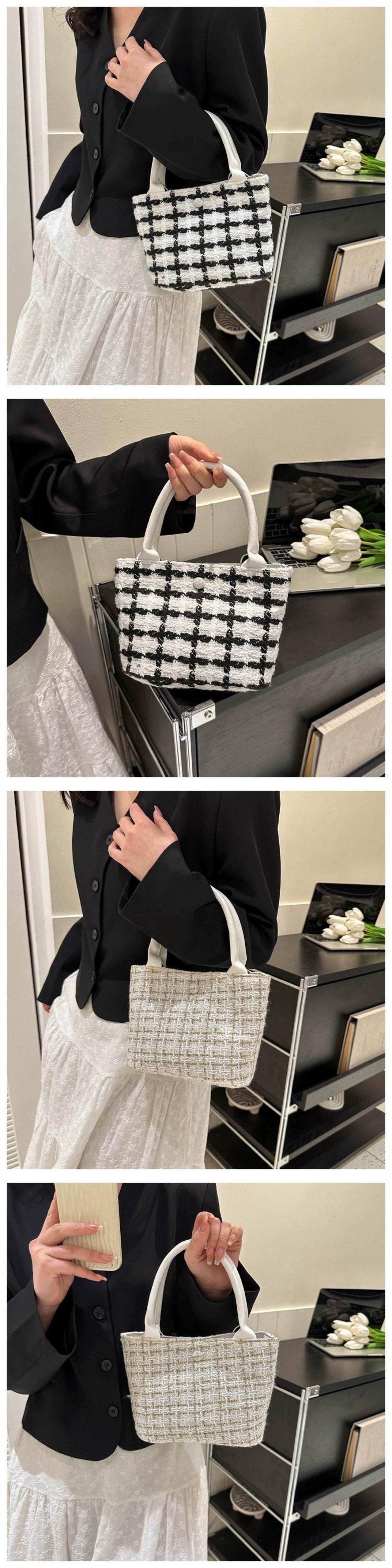2023 新しい汎用レディースバッグカジュアルオールマッチファッションポータブルショルダーバッグウールチェック柄大容量バケットバッグ maibag10650076021