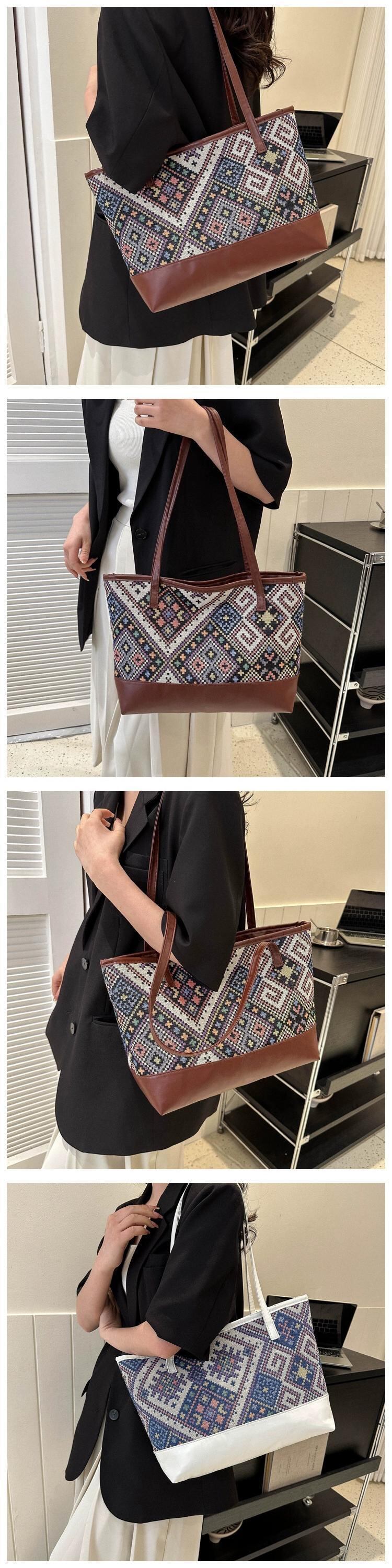 2023 新ワンショルダーカラーブロッキングトートバッグ国民風パターンカラーマッチング大容量カジュアルオールマッチパーソナライズキャンバスバッグ maibag97957011357