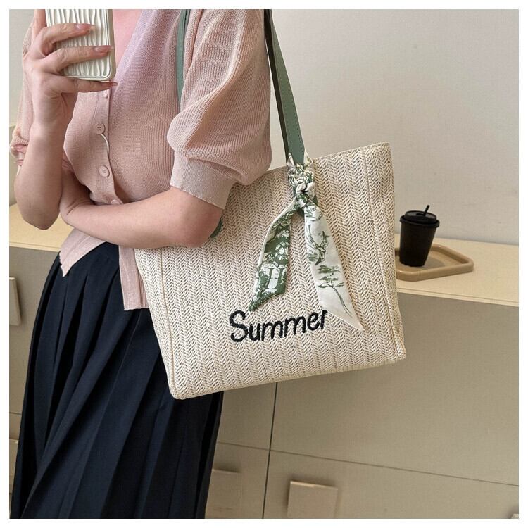 編まれたストローバッグレディース大容量2023新色コントラストオールマッチワンショルダー大学生通勤トートバッグ maibag28324845960