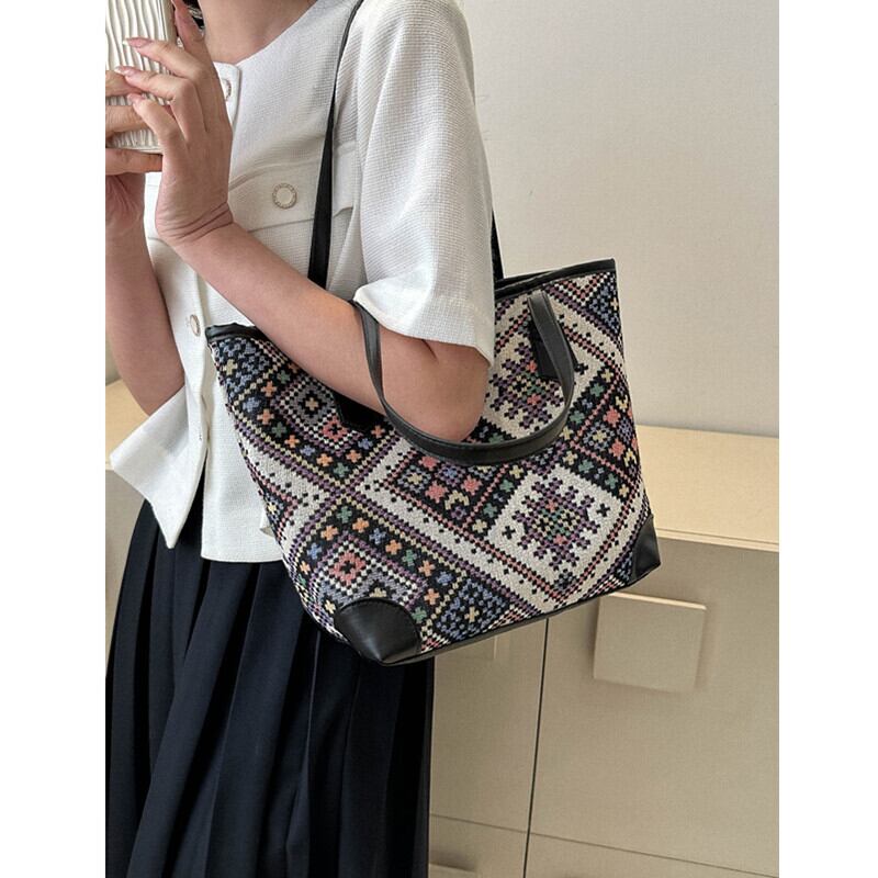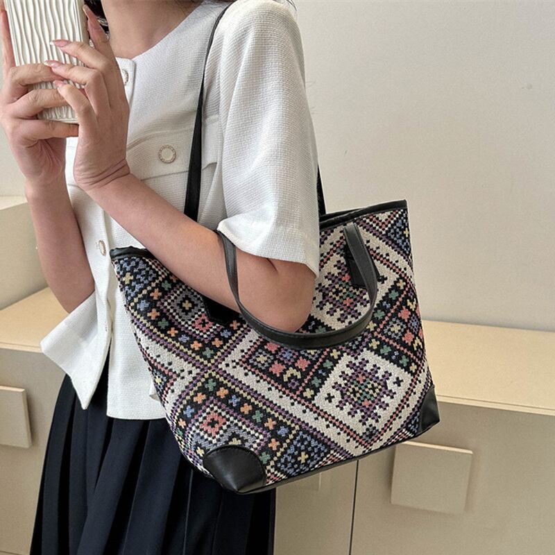 ワンショルダー大容量エスニック風キャンバスバッグ女性ハンドバッグ大学生clバッグ旅行脇トートバッグ潮 maibag86765512475