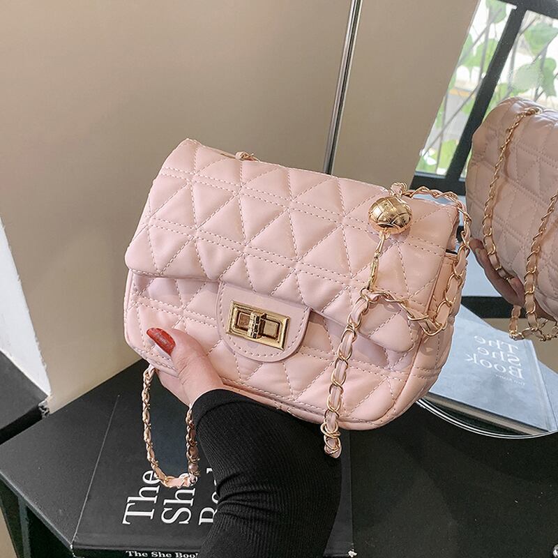 小さな香りのスタイルの女性のバッグシンプルな無地オールマッチ 2023 新しい刺繍糸テクスチャゴールドビーズチェーンワンショルダーメッセンジャー小さな正方形バッグ ソリッドカラー スクウェア maibag31433044409