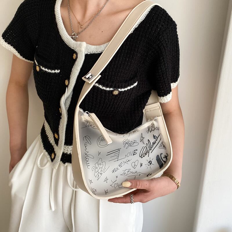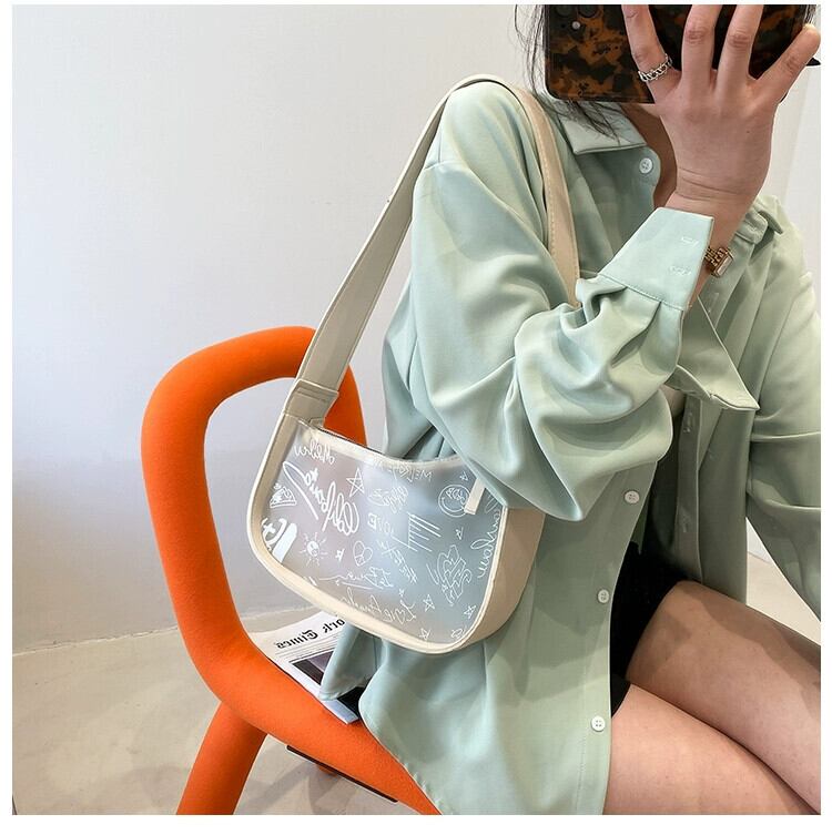 バッグ 2023 新ファッションビーチ落書き透明ゼリーバッグ高級質感ニッチワンショルダー脇の下サドルバッグ シートバッグ maibag97343809676