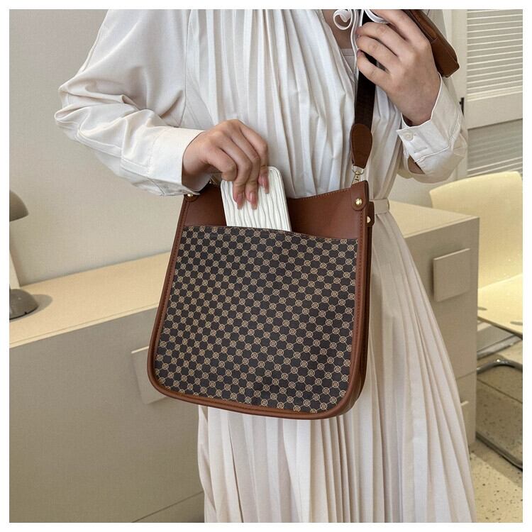 レディースバッグ コントラストカラー レトロ 幅広 ショルダーストラップ シンプル オールマッチ ソフトレザー メッセンジャー ショルダーバッグ テクスチャー 大容量 通勤 トートバッグ ワイドショルダー maibag71951904999