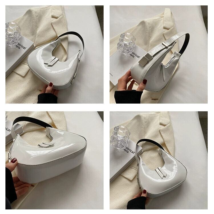 2023 新三日月脇の下バッグワンショルダーポータブルパテントレザーハイエンドセンストレンド通勤オールマッチファッションソリッドカラーレディースバッグ maibag76963932384