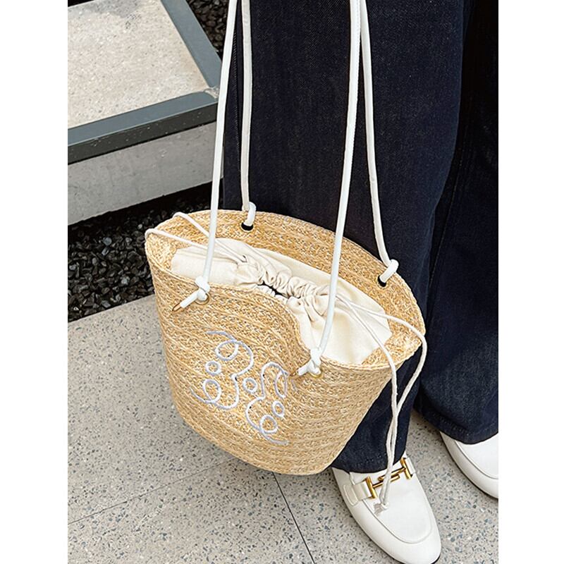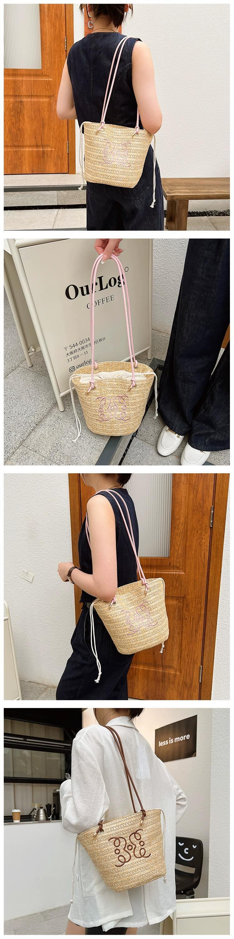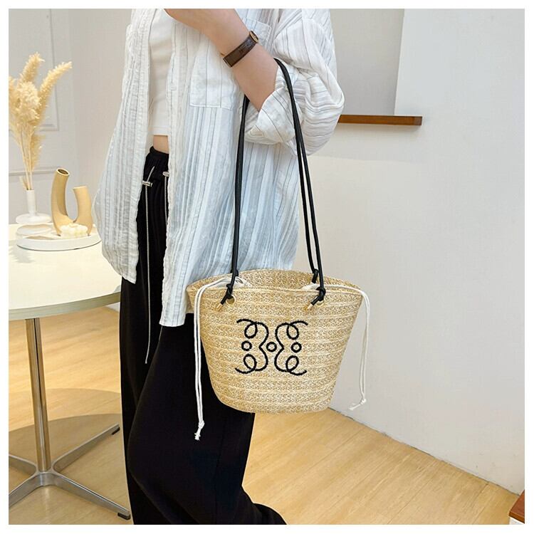 わら織りバッグの女性の 2023 新しいトレンディなホリデー織りフレンチニッチワンショルダービーチ野菜バスケットバッグオールマッチバケットバッグ maibag25153457981
