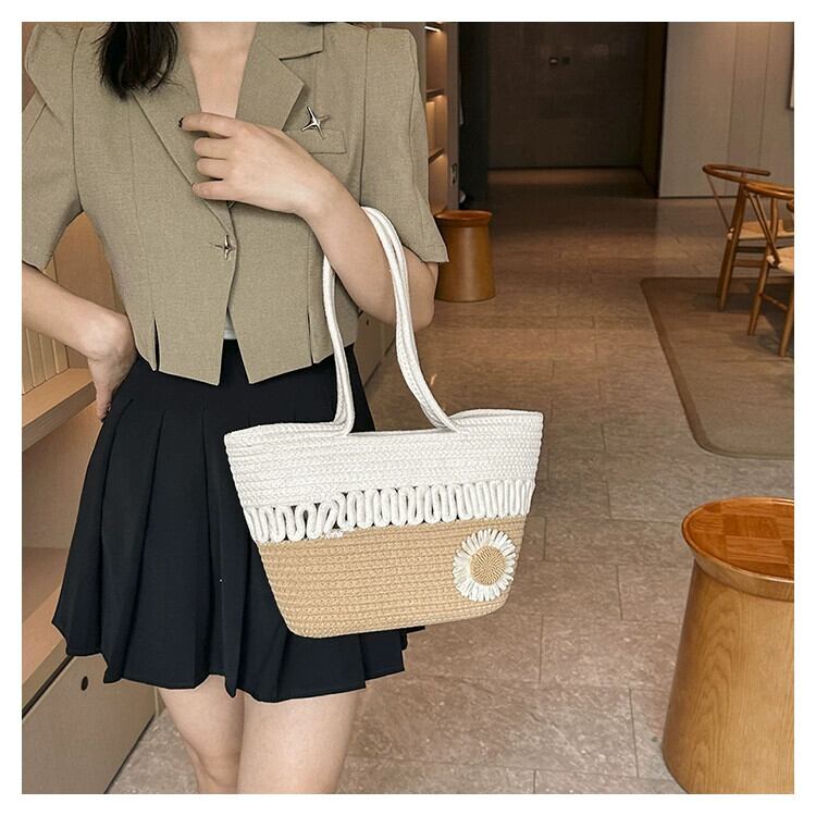 大容量 通勤バッグ レディース 2023年新作 オールマッチカラー わら織りバッグ 高級質感 ニッチワンショルダートートバッグ maibag77340928535