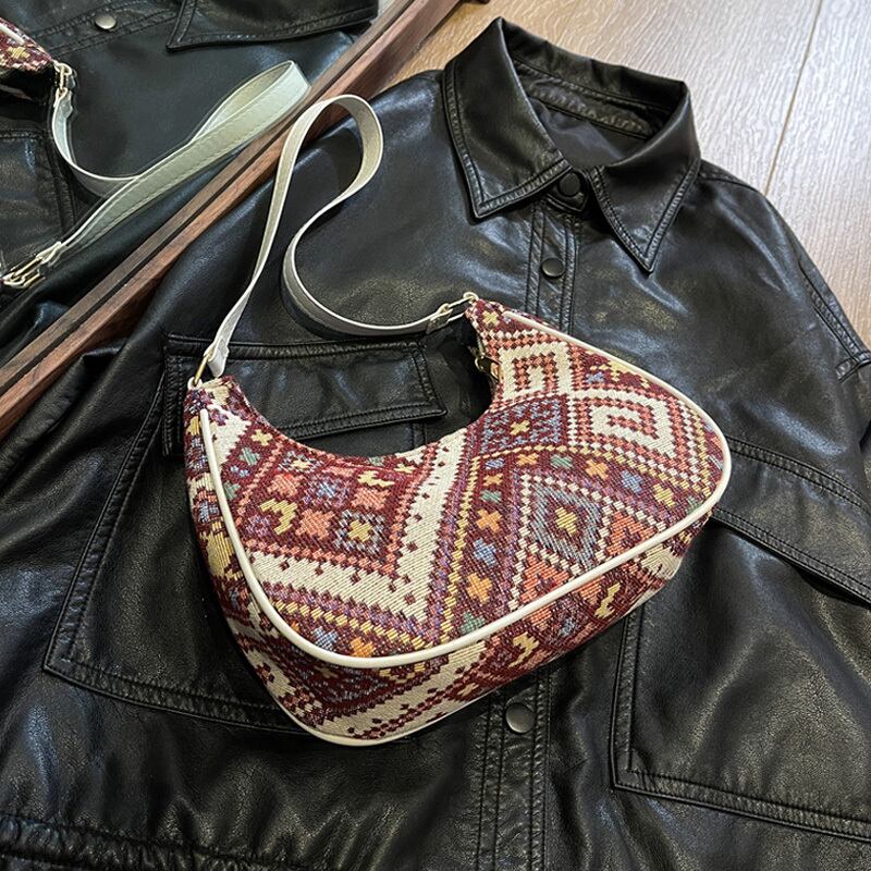 エスニックスタイルのキャンバスバッグ 2023 新しいトレンディなファッションショルダーバッグカジュアル小さな正方形のバッグ印刷コントラストカラーファッション脇の下バッグ スクウェア maibag96534501175