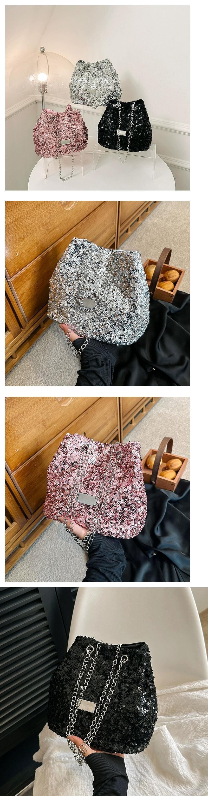 -グレードテクスチャ小さなバッグ女性 2023 新しい通勤ファッションチェーンショルダーメッセンジャーバッグ爆発的なスタイルのスパンコールバケットバッグ maibag50164998269