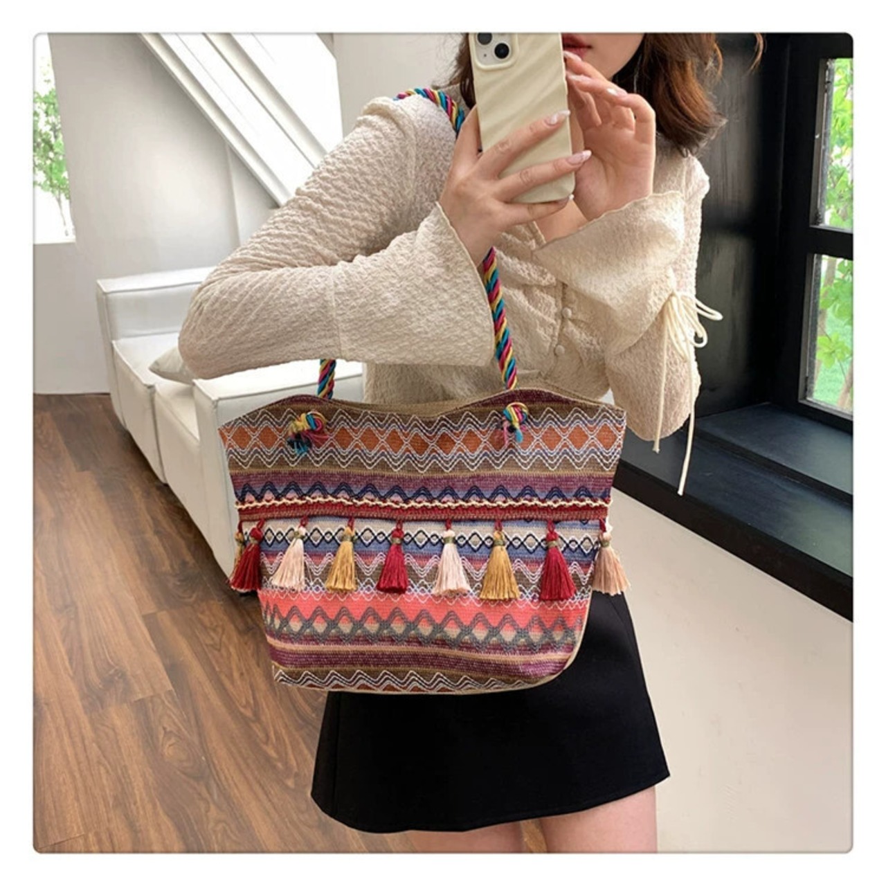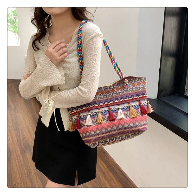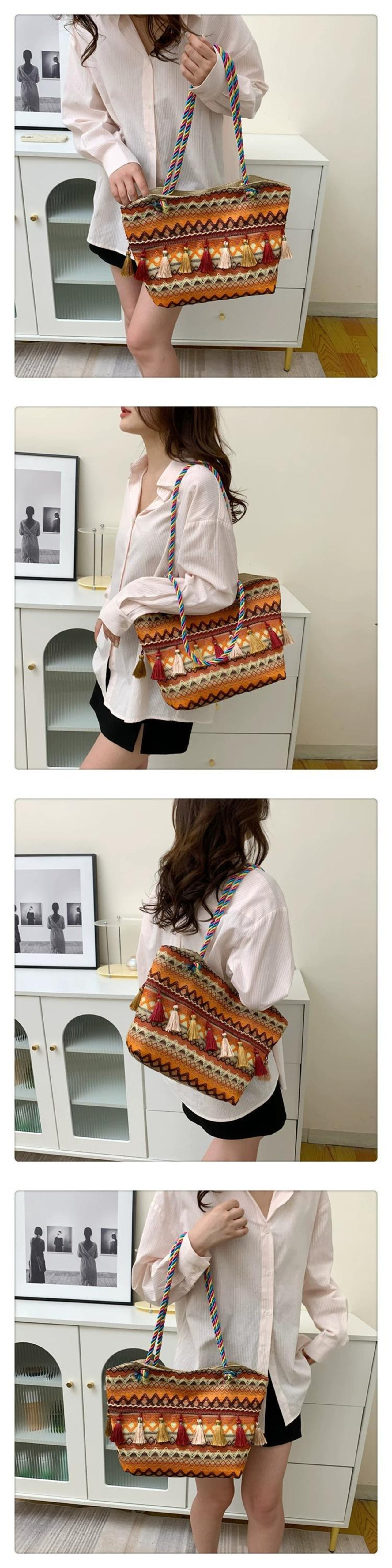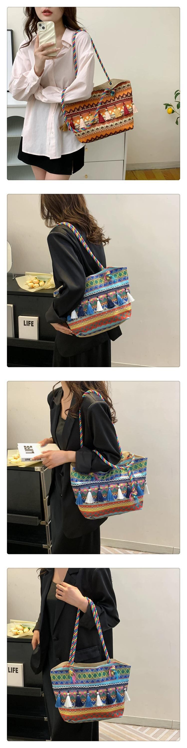 Tel エスニック風大容量バッグ女性 2023 キャンバスプリントカラー織ショルダートートバッグ maibag4034215512