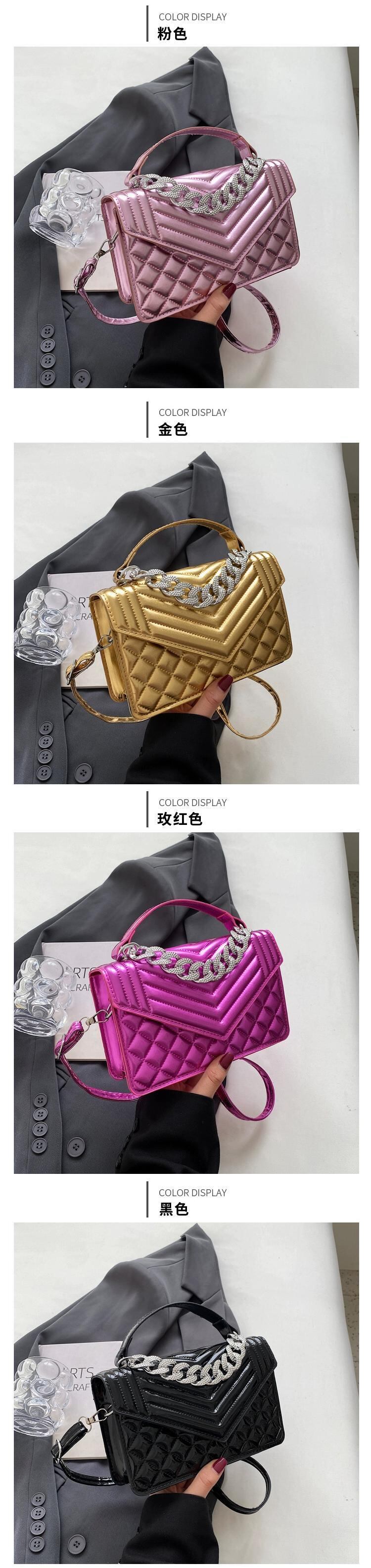 多用途のインメッセンジャーバッグ女性 2023 新しいトレンディなレトロファッションダイヤモンドチェーンパテントレザー光沢のあるショルダー小さな正方形のバッグ スクウェア maibag68475228444