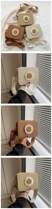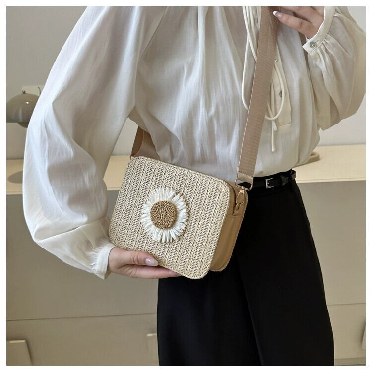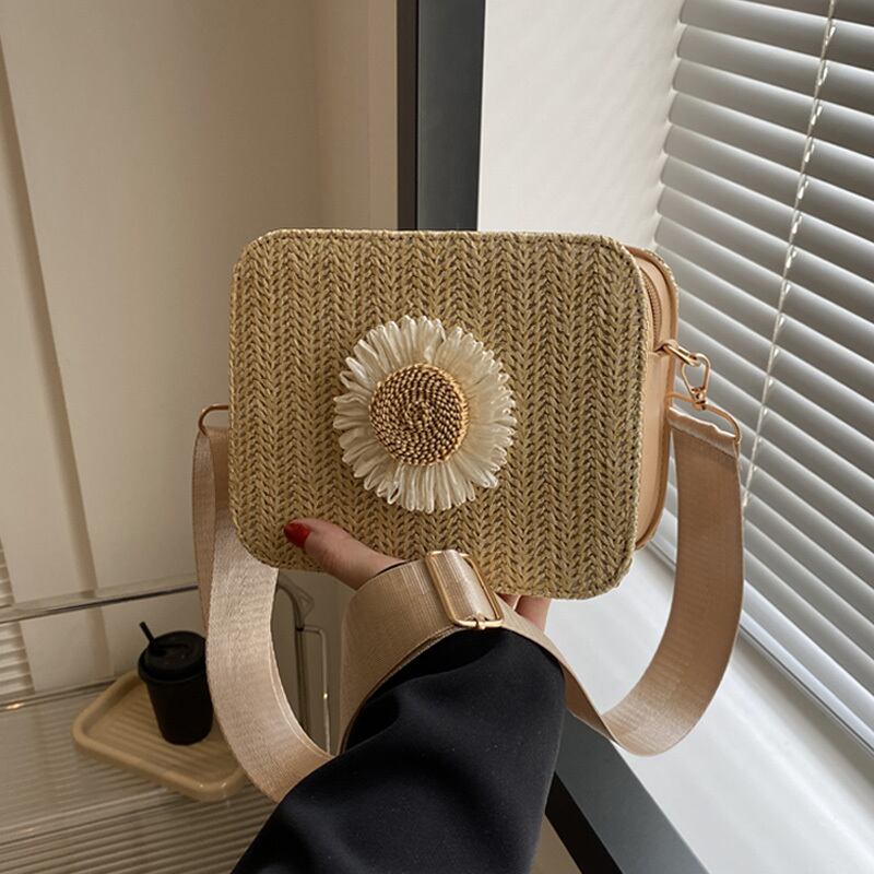 かわいい花織バッグ女性 2023 新しいワイドショルダーストラップ小さな新鮮な小さな正方形のバッグわら織りバッグメッセンジャーバッグ 大人ガーリー スウィート キュート カジュアル フラワーデザイン スクウェア maibag40476047607