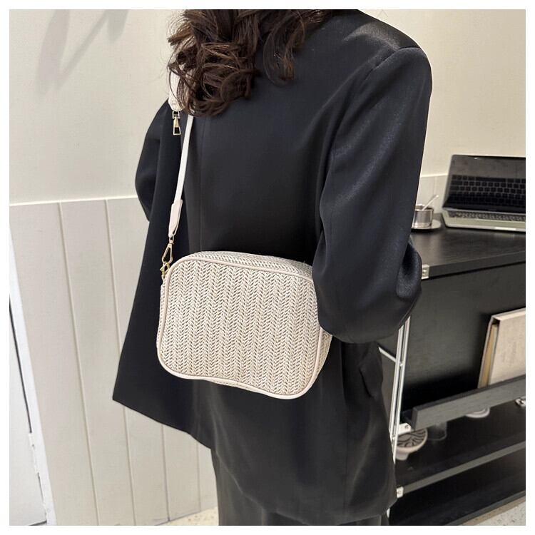 今年の人気の織られた小さなバッグの女性の 2023 新しい eign スタイルオールマッチわら織りワイドショルダーストラップワンショルダーメッセンジャー小さな正方形バッグ スクウェア maibag8295250644