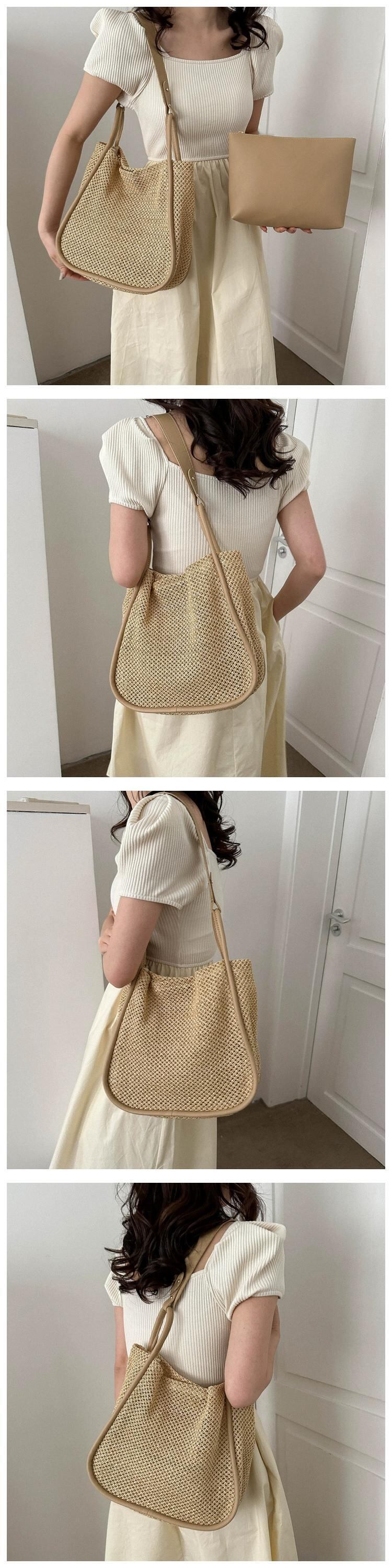 インレトロ織りトートバッグ休暇スタイルわら織りバッグショルダーバッグ大容量ショッピングバッグビーチバッグマザーバッグ maibag57081035765