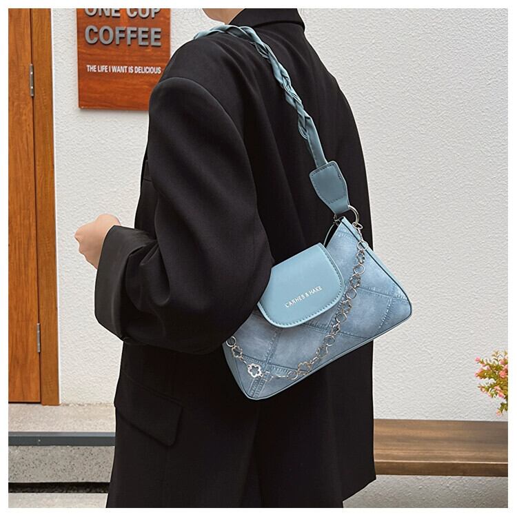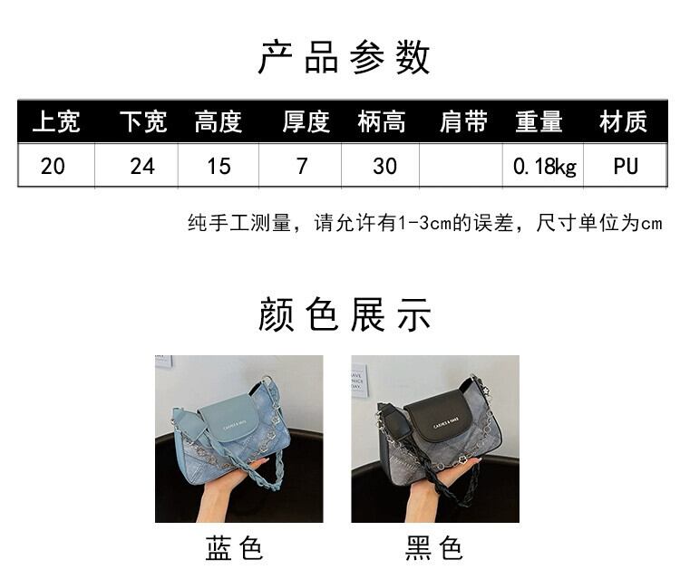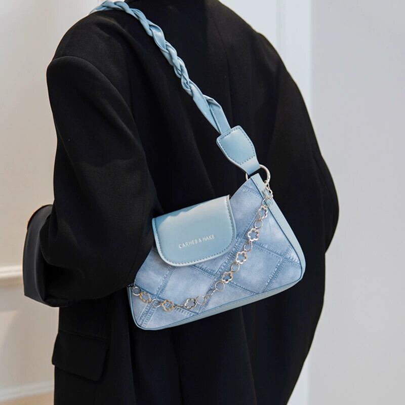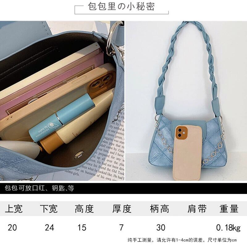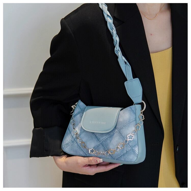 2023 新フレンチスティック脇の下デニムカーステッチソフトレザーショルダーバッグ女性の高級質感チェーン織ハンドバッグ maibag70928459748
