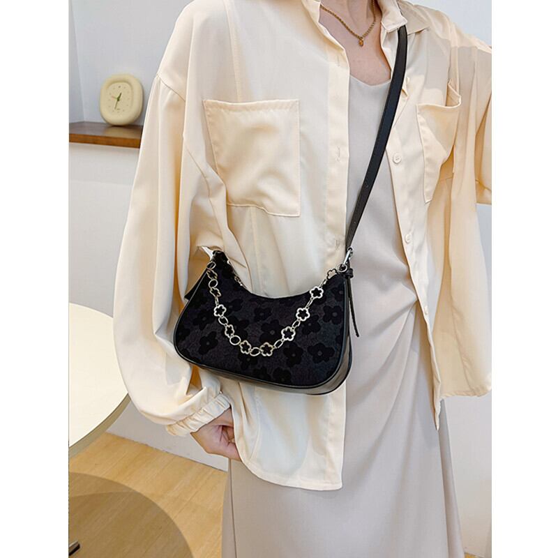花高価値脇の下オールマッチポータブルショルダー三日月バッグ 2023 新しいトレンディなファッションチェーンメッセンジャーバッグ女性 フラワーデザイン maibag73837071950