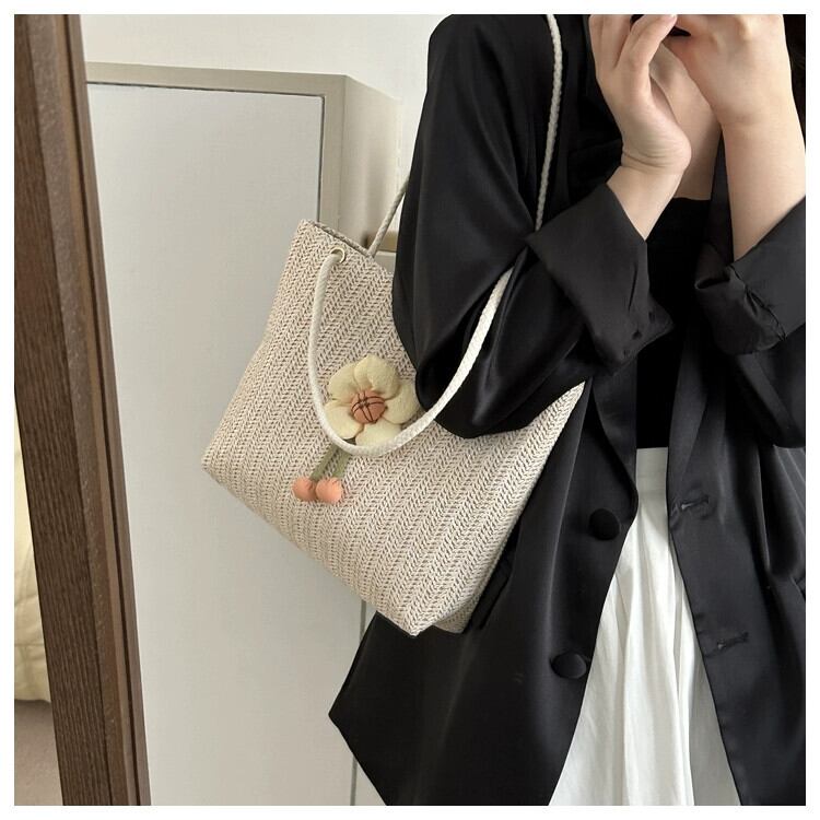 大容量 gr 織バッグ女性 2023 夏の新しい小さなフレッシュインフラワーショルダートートバッグビーチバッグ サマー 夏物 フラワーデザイン maibag98610742083