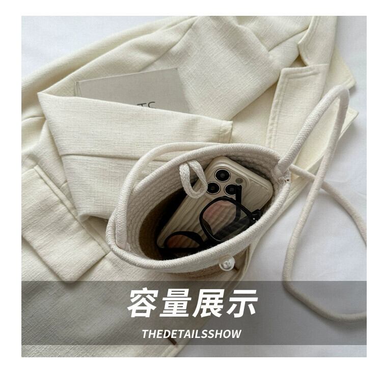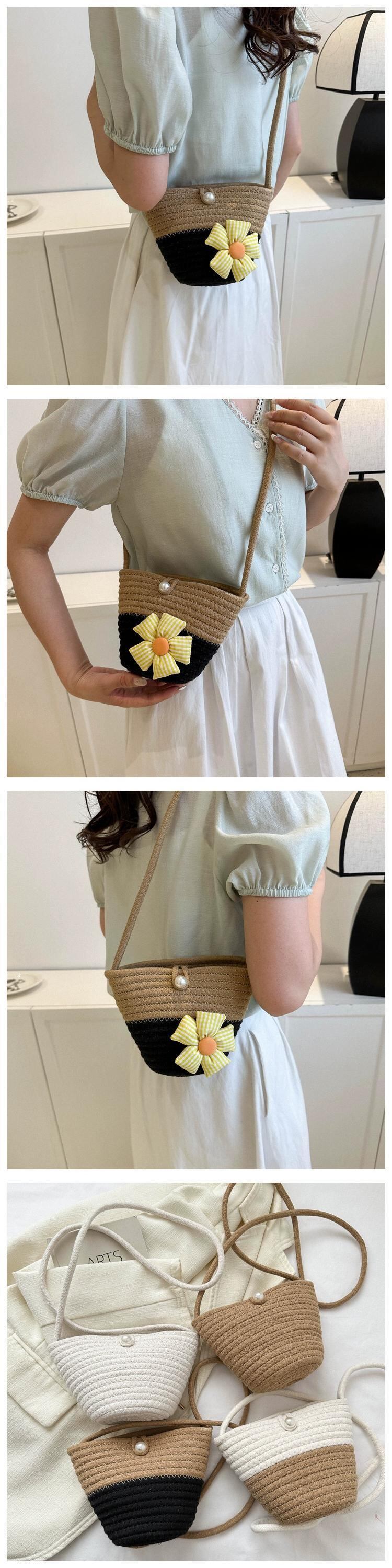 わらバッグ女性の 2023 新しいオールマッチレトロフラワー籐バケツバッグ海辺のビーチ織りメッセンジャースモールバッグ ストローバッグ フラワーデザイン maibag14525842267