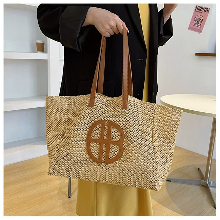 eign-style わら織りバッグ女性 2023 新しいハイエンド織りバッグ大容量通勤ショッピングバッグトートビーチバッグ トートバッグ maibag83484466782