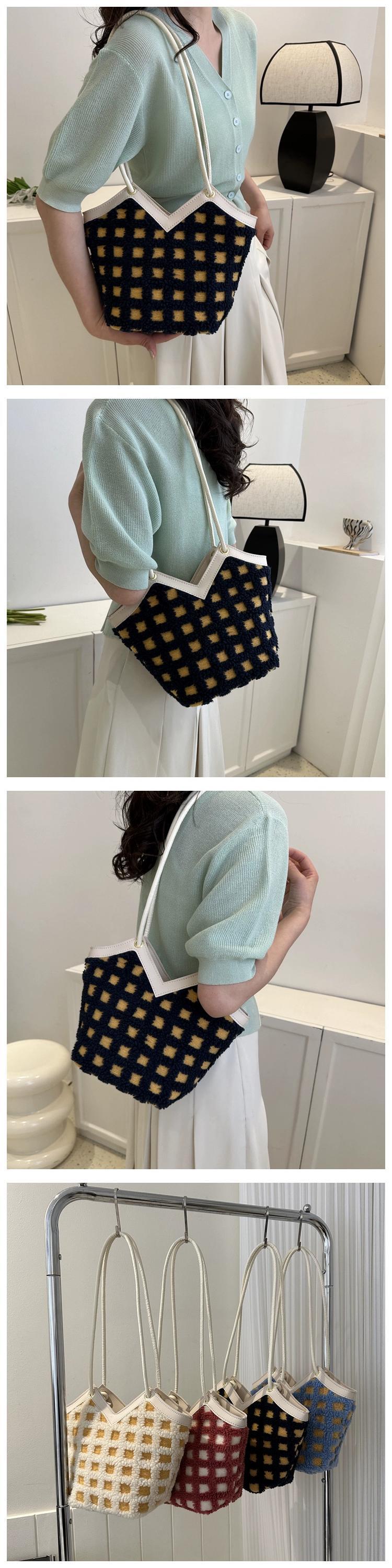 バッグ 2023 新レトロファッションシンプルなハイエンドセンスカラーコントラストステッチバケットバッグオールマッチシングルショルダー脇バッグ女性 maibag57343758886