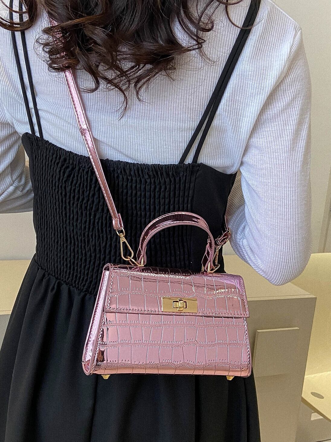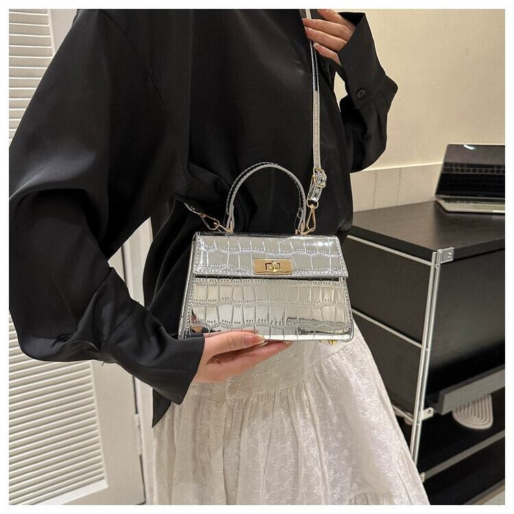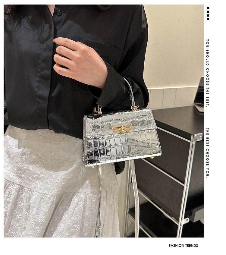 2023 新しいバッグの女性のファッションハイエンドパテントレザークロコダイルパターンクロスボディ eign スタイルポータブルレトロケリー小さな正方形バッグ スクウェア maibag52645013701