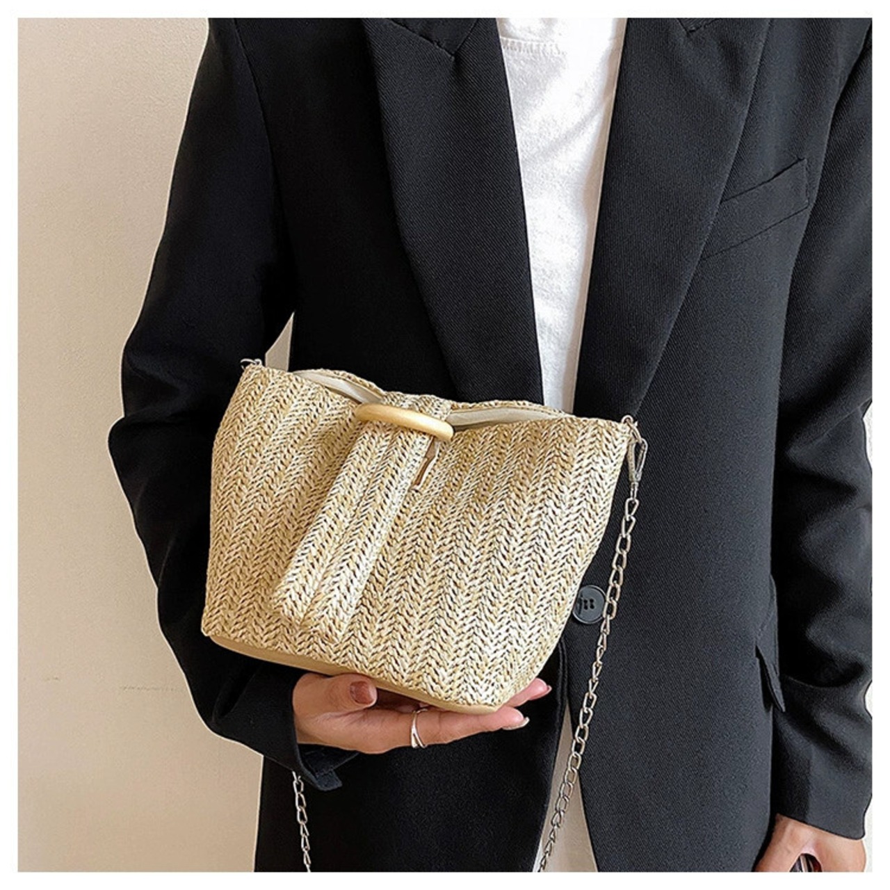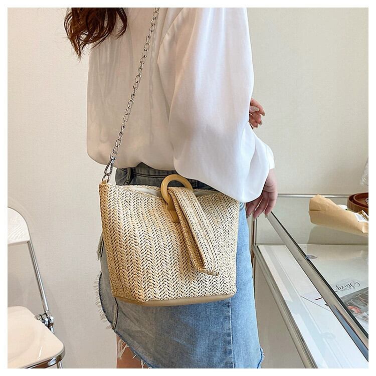 わら織りバッグ 2022 新しいトレンディなファッションニッチデザイン小さなバッグ女性の夏織ショルダーメッセンジャーバッグバケットバッグ サマー 夏物 maibag27976503602