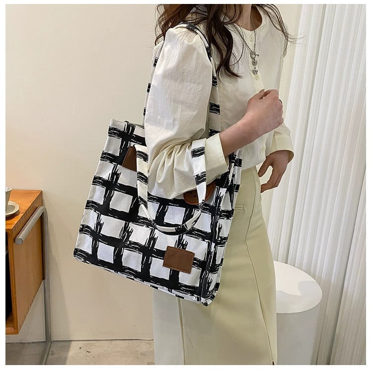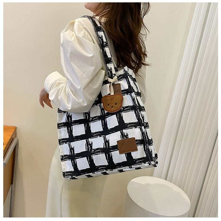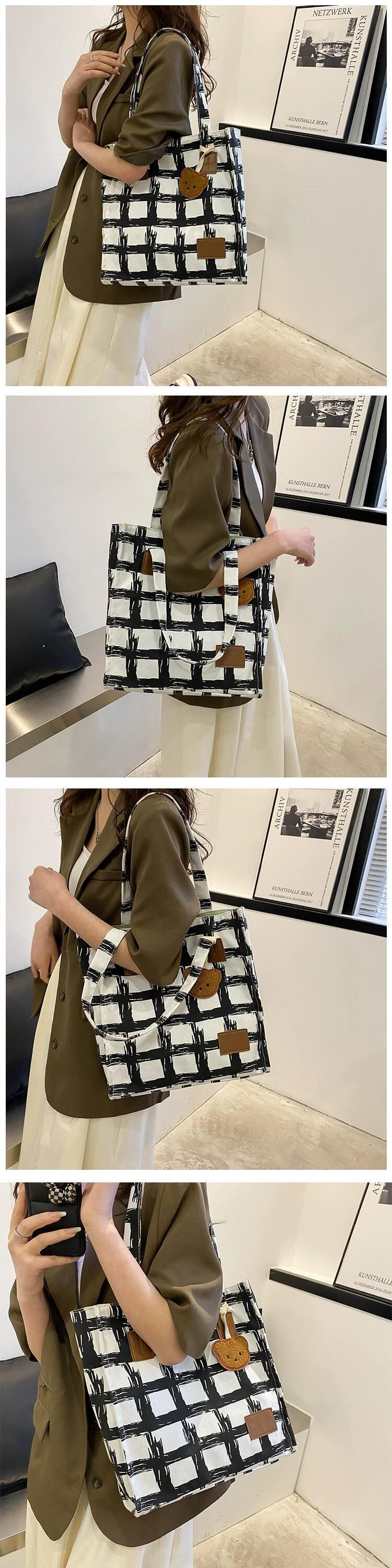 大容量キャンバスバッグ女性2022新作人気市松ハンドバッグ学生cl通勤トートショルダー トートバッグ maibag22359861968