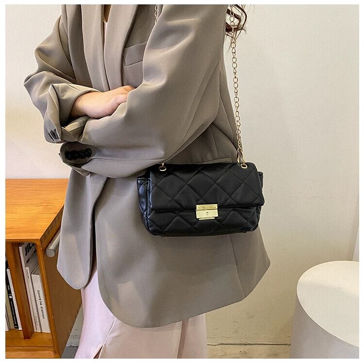 2022 少人数デザインの新しいトレンディな女性のバッグオールマッチ菱形ロックチェーン小さなバッグワンショルダーメッセンジャーレトロ小さなスクエアバッグ スクウェア maibag56657477755