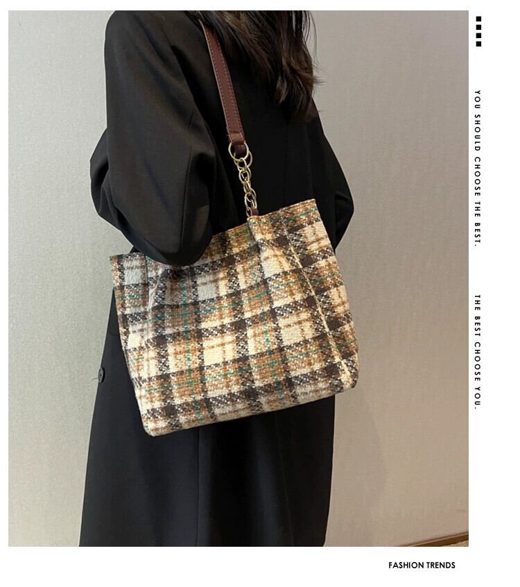 秋冬の大容量バッグ女性 2022 新しいトレンディなハイエンドチェック柄ハンドバッグ多用途インショルダートートバッグ オータム 秋物 ウィンター 冬物 maibag81628193041