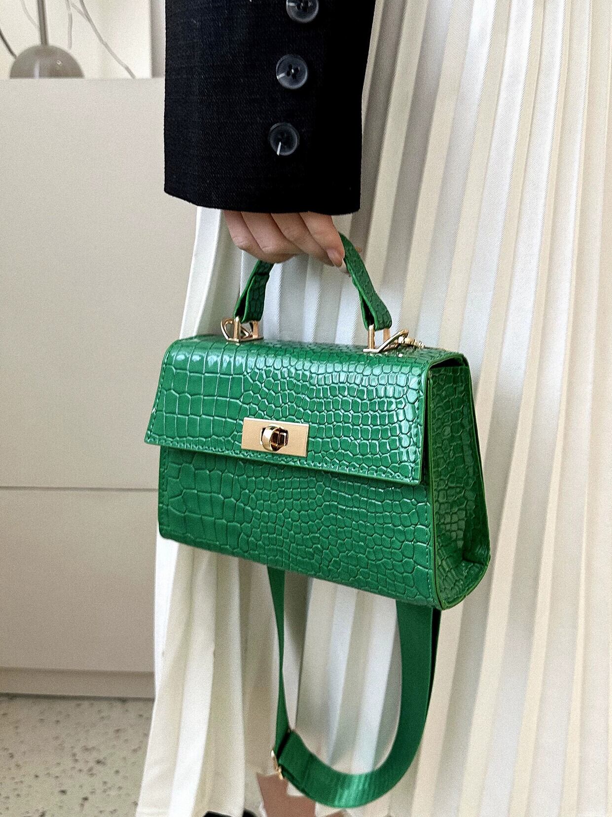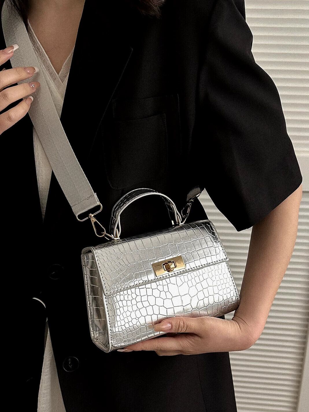 ハンドバッグバッグ女性 2023 新しいトレンディなレトロパテントレザークロコダイルパターン小さな正方形バッグオールマッチワイドショルダーストラップシングルショルダーメッセンジャーバッグ スクウェア maibag92497975654