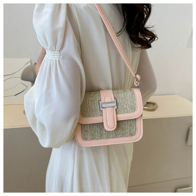 2023新しいトレンドスタイルのシンプルな高級質感わら織りコントラストカラー織りショルダーメッセンジャーバッグオールマッチ小さなスクエアバッグ スクウェア maibag89053547494