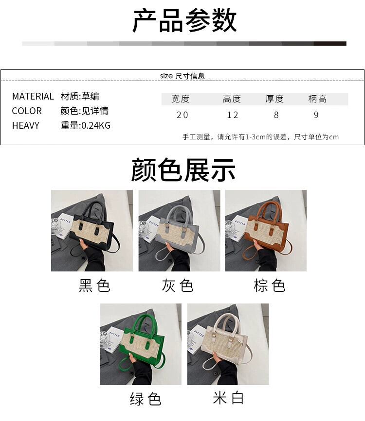 2023 新しいトレンディなスタイルのシンプルなハンドバッグ高級質感わら織りカラーコントラストワンショルダーメッセンジャーバッグオールマッチ小さなスクエアバッグ スクウェア maibag21557651987
