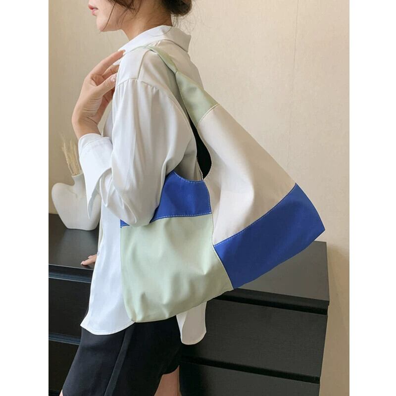 トートバッグ女性 2022 新バージョン学生カジュアルオールマッチキャンバスバッグ女性コントラストカラーワンショルダー大容量ショッピングバッグ maibag29688999969