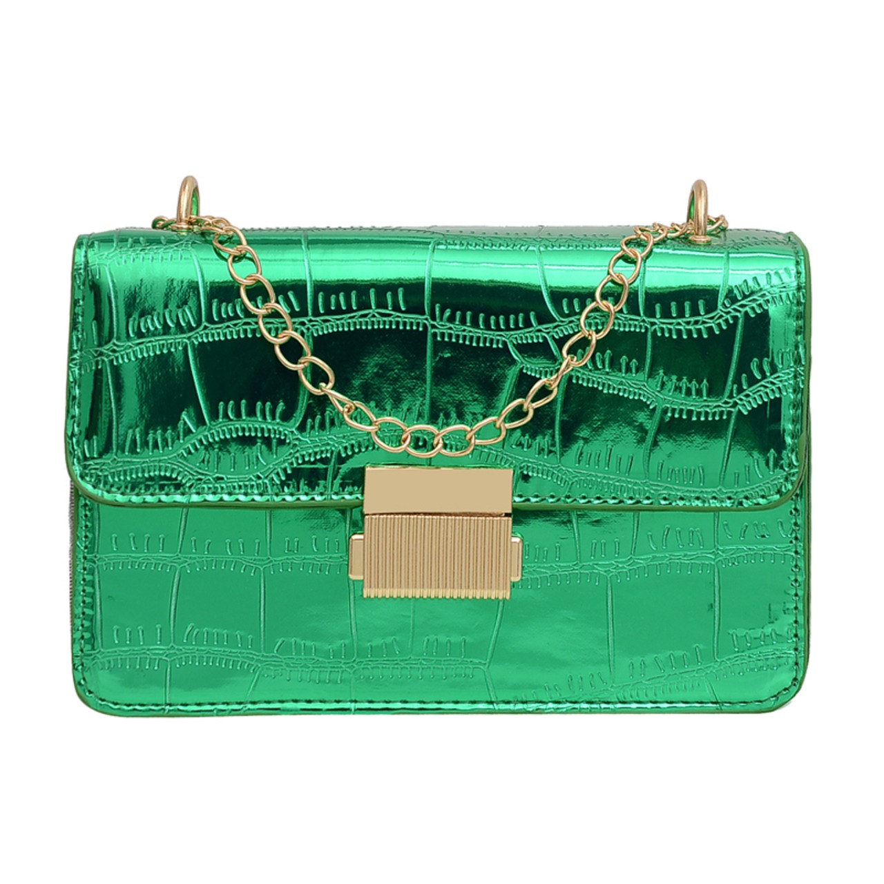 ブライトパテントレザーバッグ女性 2023 新しい高級質感クロコダイルパターン通勤チェーン小さなスクエアバッグ人気のメッセンジャーバッグ スクウェア maibag11407858802